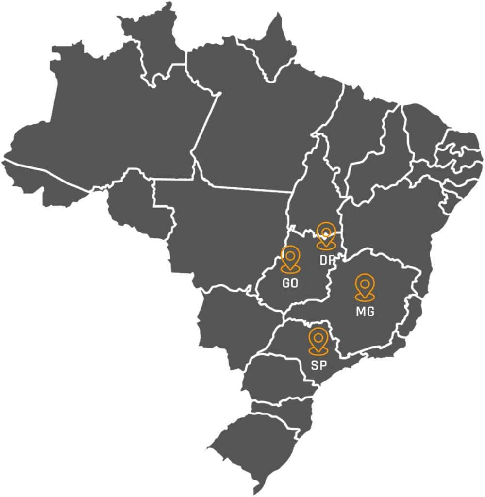 Nosso foco principal está nos estados de São Paulo, Goiás, Distrito Federal e Minas Gerais, garantindo agilidade e cobertura estratégica nessas regiões.